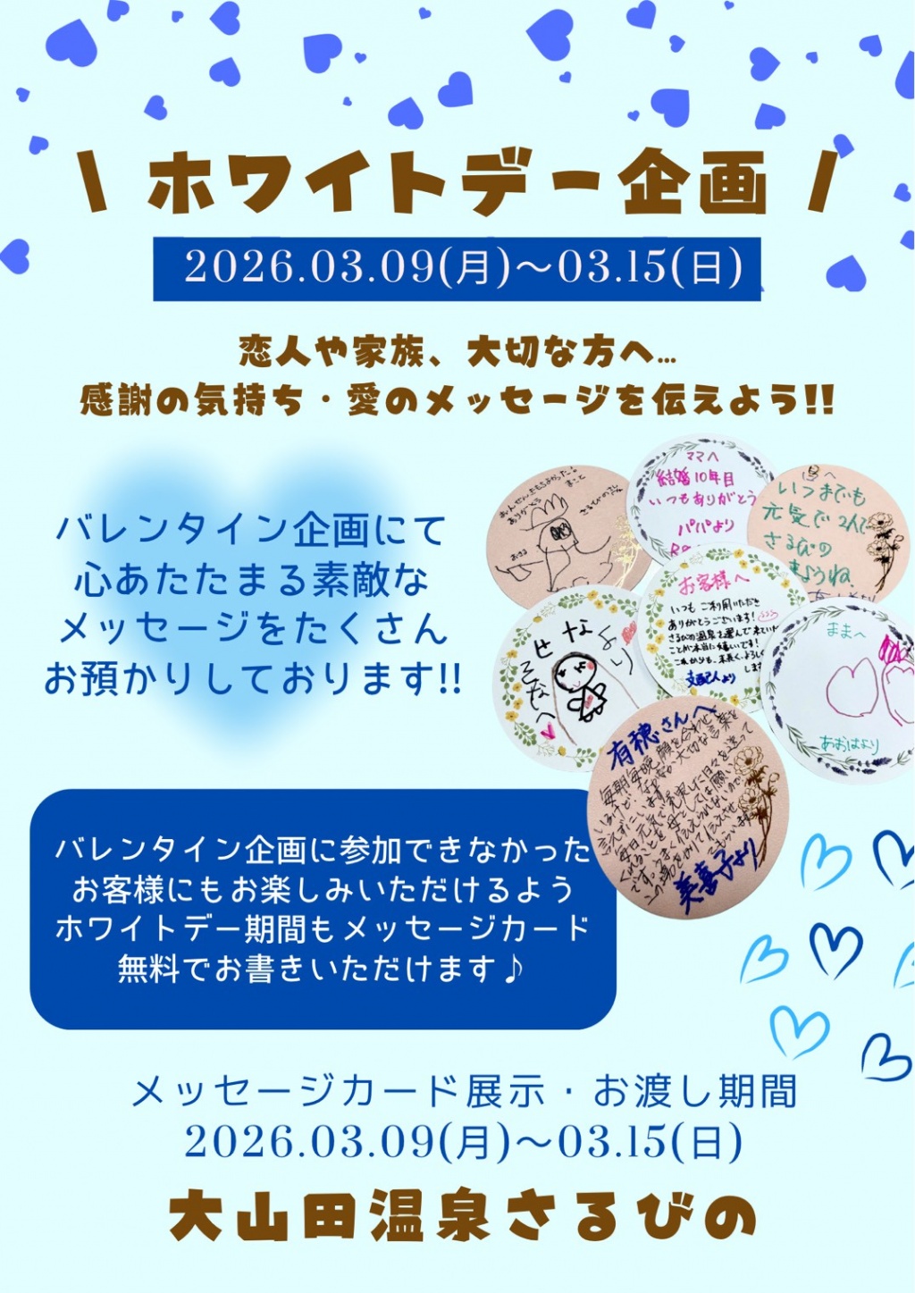 恋人や家族、大切な方へ愛のメッセージカードを展示させていただきます!