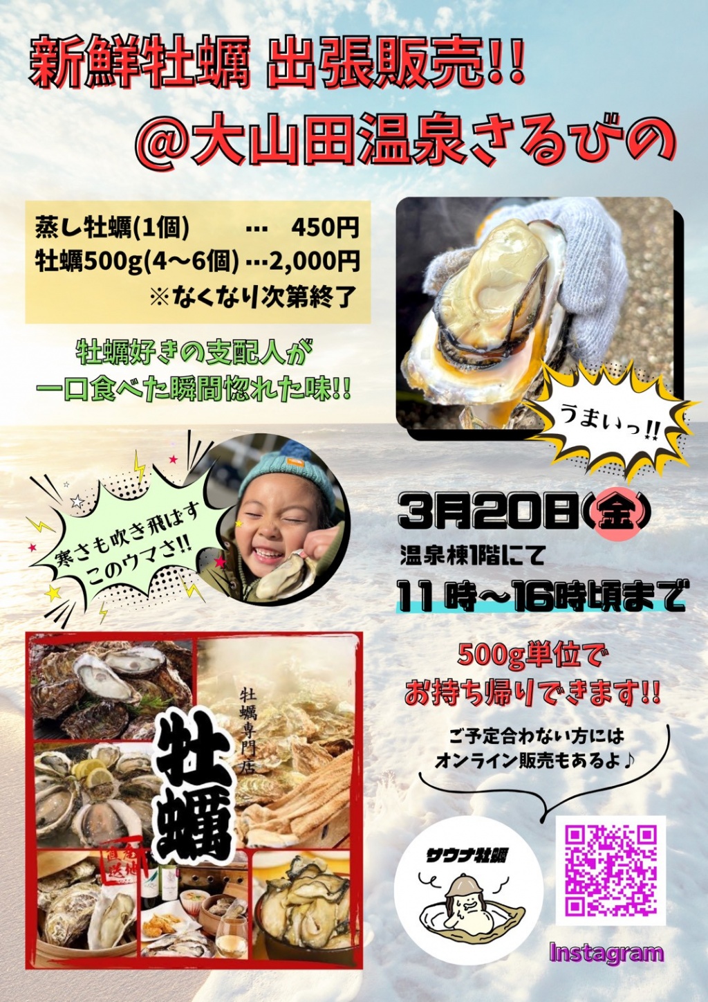 毎月大好評のサウナ牡蠣さんの出張販売!
