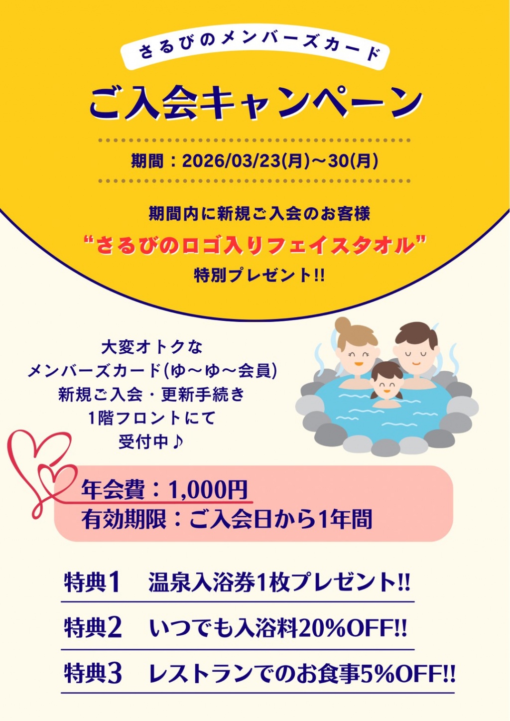 ゆーゆー会員さまは2/5(木)・23(月祝)に会員証ご提示で入浴料金500円!